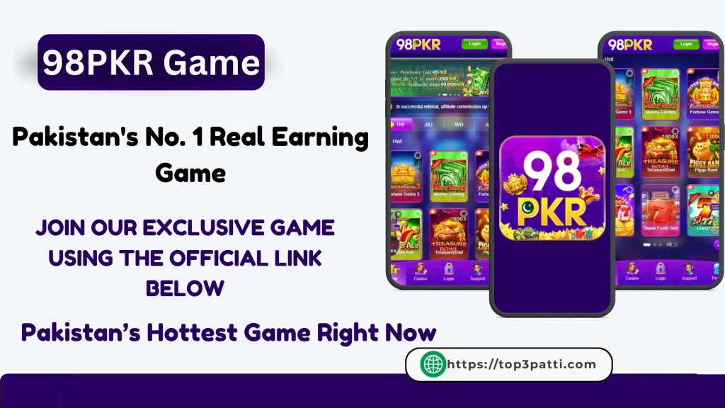 Download 98PKR Game right now the official app for Pakistani gamers looking for earning money or side income. With safe gaming experience, secure app features, and a wide range of casino games and sports betting options, this is the top gaming platform for anyone who wants to make money from home. Start today play now, explore games, try new games, and earn real money in Pakistan.