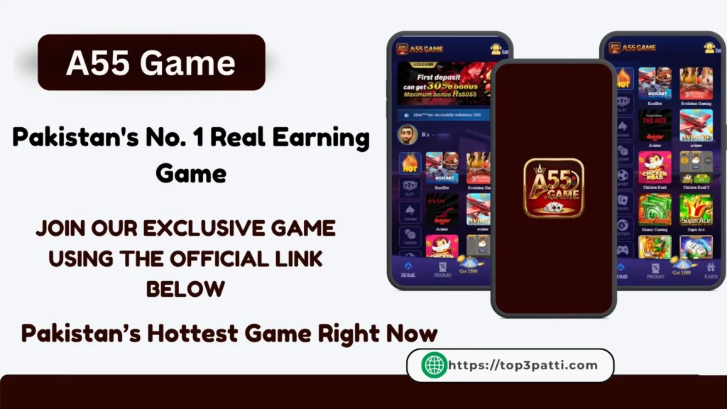 A55 Game is one of the most popular online gaming platforms in Pakistan. This gaming platform gives you exciting casino experience and real chances to win real money. With thousands of downloads, it has become a top gaming app for Pakistani players who want to make money from home by enjoying their favourite games.
